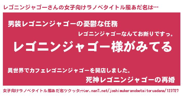| 男性向けラノベタイトル風あだ名 | 『レゴニンジャゴーの嫁は女の子じゃないと思った?』 |