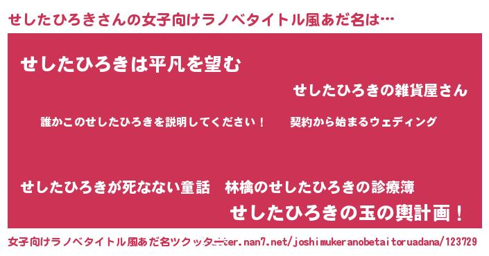 | 男性向けラノベタイトル風あだ名 | 『セシタヒロキアートオンライン』 |