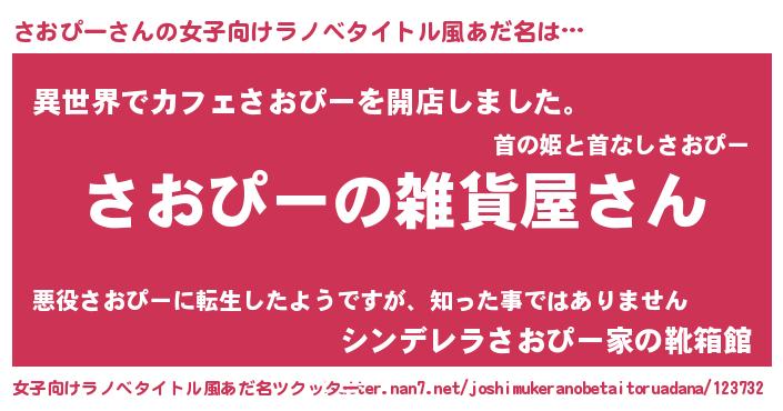 | 男性向けラノベタイトル風あだ名 | 『やはりさおぴーの青春ラブコメはまちがっている 』 |