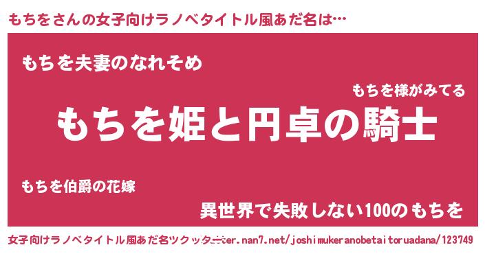 | ヒーロー風カッコイイあだ名 | 『スーパーモチヲ』『正義の使者もちを』 |
