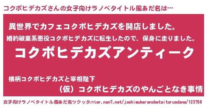 | ヒーロー風カッコイイあだ名 | 『ウルトラ戦士コクボヒデカズ』 |