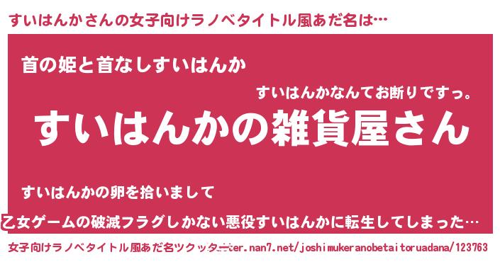 | 男性向けラノベタイトル風あだ名 | 『やはりすいはんかの青春ラブコメはまちがっている 』 |