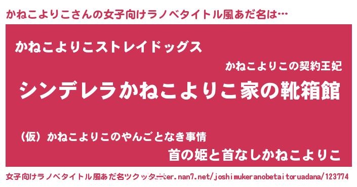 | 胡散臭い通販商品みたいなあだ名 | 『ガンによく効く高麗人参…その名も「かねこよりこ」』 |