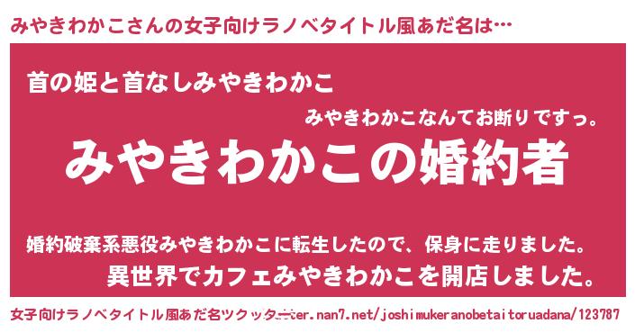 | 胡散臭い通販商品みたいなあだ名 | 『運命の人と巡り会える高級そうな壺…その名も「みやきわかこ」』 |