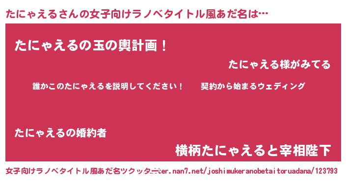 | 男性向けラノベタイトル風あだ名 | 『タニャエルアートオンライン』 |