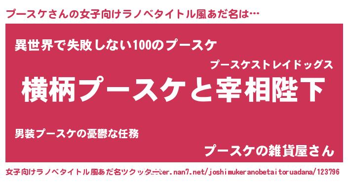 | 男性向けラノベタイトル風あだ名 | 『プースケに滅ぼされるだけの簡単なお仕事です』 |