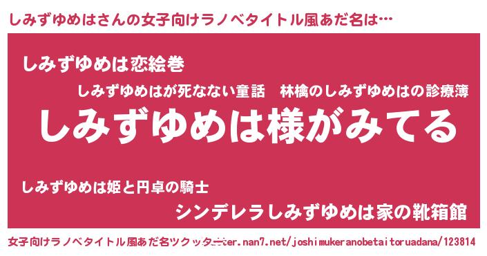 | 意味不明あだ名 | 『とにかく怪しいしみずゆめは』 |