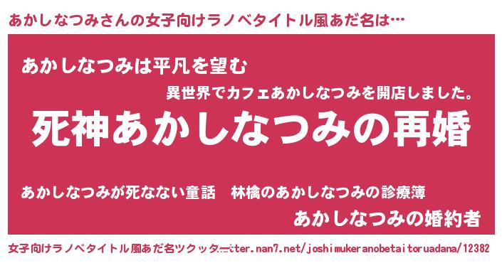 | 男性向けラノベタイトル風あだ名 | 『ノーゲーム・ノーアカシナツミ』 |