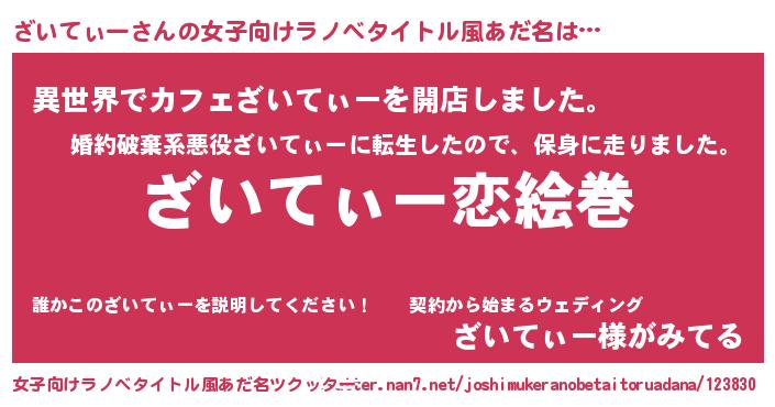 | ヒーロー風カッコイイあだ名 | 『慈愛の使者ざいてぃー』『幻影騎士ザイ』 |
