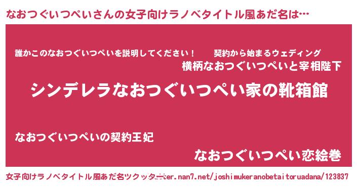 | 胡散臭い通販商品みたいなあだ名 | 『必ず成功するブレスレット…その名も「なおつぐいつぺい」』 |