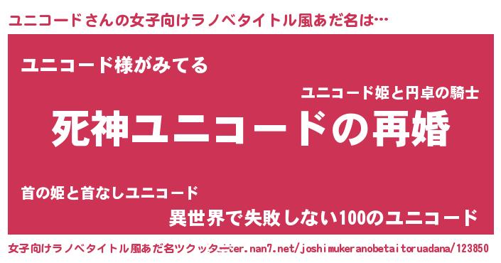 | 男性向けラノベタイトル風あだ名 | 『ノーゲーム・ノーユニコード』 |
