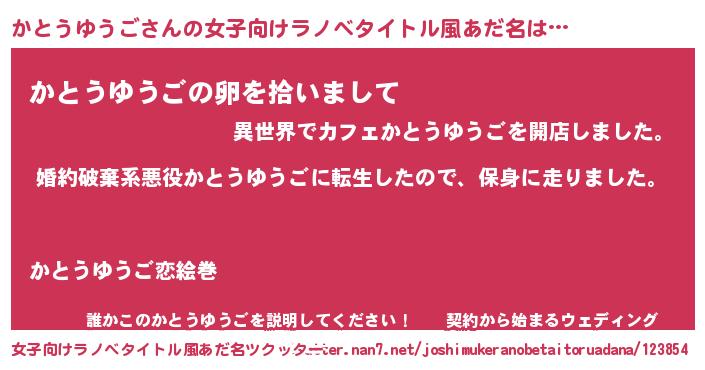 | 男性向けラノベタイトル風あだ名 | 『カトウユウゴスレイヤー』 |