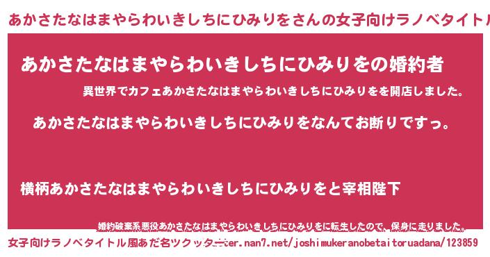 | 男性向けラノベタイトル風あだ名 | 『魔法科高校のあかさたなはまやらわいきしちにひみりを』 |
