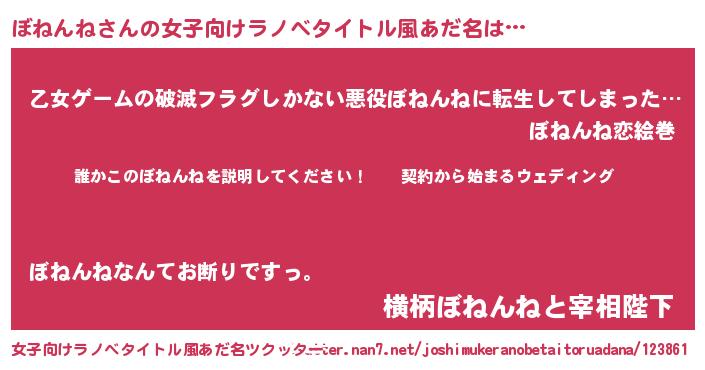 | 意味不明あだ名 | 『ペロリンぼねんね』『自称ぼねんね』 |