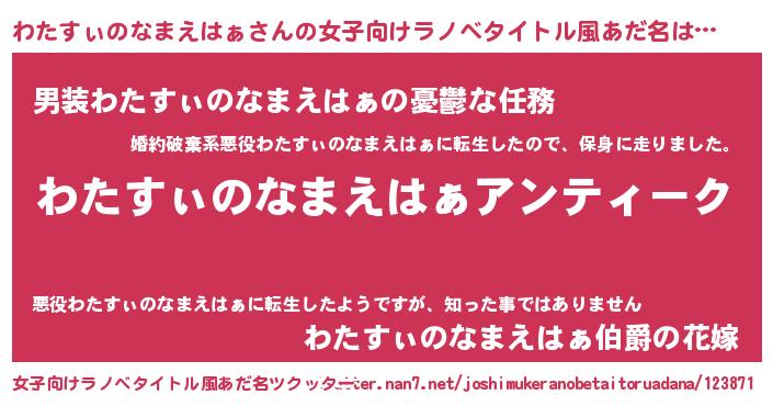 | 意味不明あだ名 | 『自称わたすぃのなまえはぁ』 |