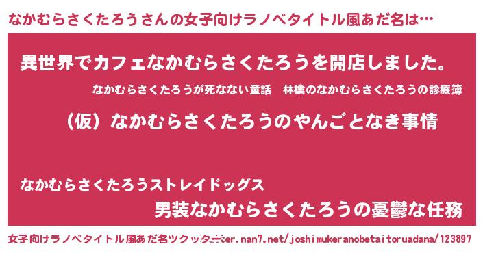 | 男性向けラノベタイトル風あだ名 | 『なかむらさくたろうの憂鬱』 |