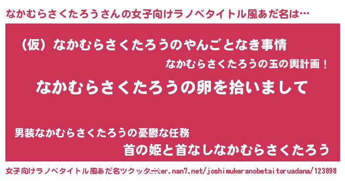 | 男性向けラノベタイトル風あだ名 | 『なかむらさくたろうの嫁は女の子じゃないと思った?』 |