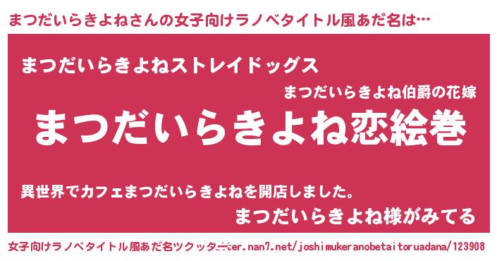 | 男性向けラノベタイトル風あだ名 | 『ノーゲーム・ノーマツダイラキヨネ』 |