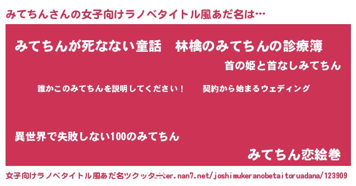 | 男性向けラノベタイトル風あだ名 | 『ミテチンアートオンライン』 |