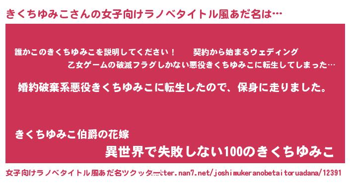 | 男性向けラノベタイトル風あだ名 | 『キクチユミコスレイヤー』 |