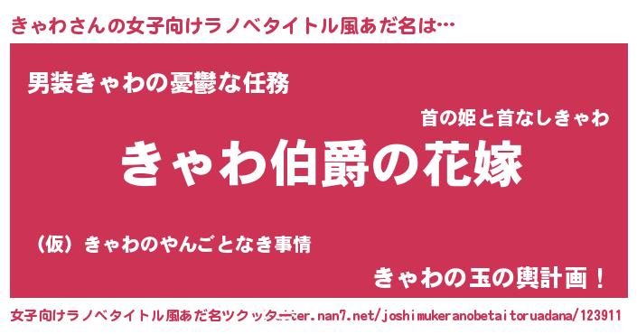 | 胡散臭い通販商品みたいなあだ名 | 『世界が平和になる高級そうな壺…その名も「きゃわ」』 |