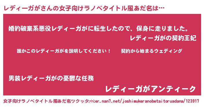 | 肩書あだ名 | 『レディーガが店長』『レディーガが中佐』 |