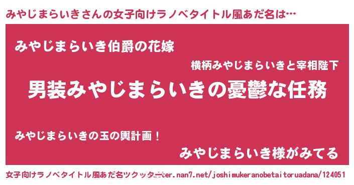 | 意味不明あだ名 | 『みやじまらいきフォーエバー』 |