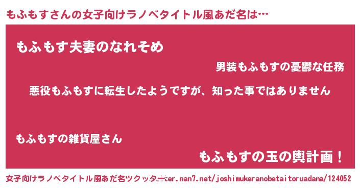 | ヒーロー風カッコイイあだ名 | 『仮面モフダー』『正義の使者もふもす』 |