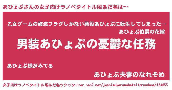 | 胡散臭い通販商品みたいなあだ名 | 『あなたにだけ特別に提供する100年もののヴィンテージワイン…その名も「あひょぷ」』 |