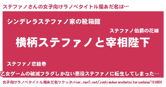 | 男性向けラノベタイトル風あだ名 | 『ステファノに滅ぼされるだけの簡単なお仕事です』 |