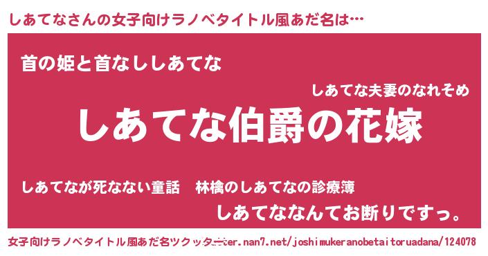 | 意味不明あだ名 | 『しあてなフォーエバー』『自称しあてな』 |