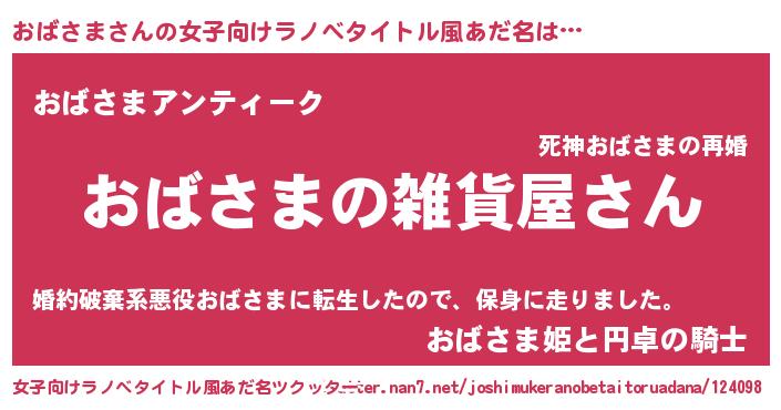 | 意味不明あだ名 | 『おばさまフォーエバー』『自称おばさま』 |