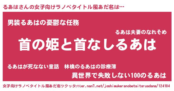 | ヒーロー風カッコイイあだ名 | 『ネオルアハ』『慈愛の使者るあは』 |