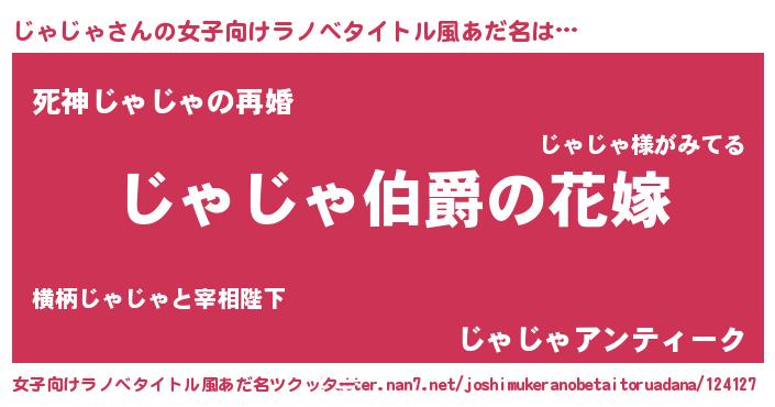 | 胡散臭い通販商品みたいなあだ名 | 『世界が平和になる高級そうな絵画…その名も「じゃじゃ」』 |
