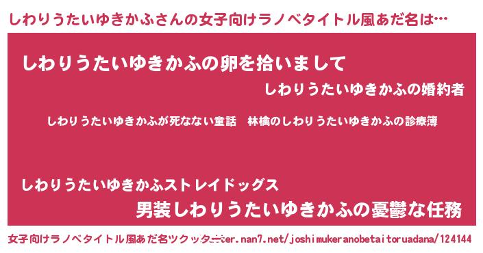 | 男性向けラノベタイトル風あだ名 | 『魔弾の王としわりうたいゆきかふ』 |