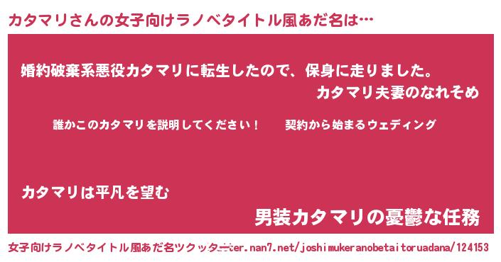 | 男性向けラノベタイトル風あだ名 | 『カタマリアートオンライン』 |
