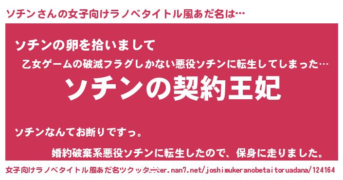 | 男性向けラノベタイトル風あだ名 | 『ソチンという概念が存在しない退屈な世界 』 |
