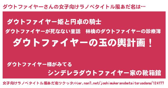 | 男性向けラノベタイトル風あだ名 | 『ダウトファイヤー~年齢イコール彼女いない歴の魔法使い~』 |