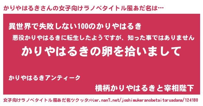 | 胡散臭い通販商品みたいなあだ名 | 『伝統あるサプリメント…その名も「かりやはるき」』 |