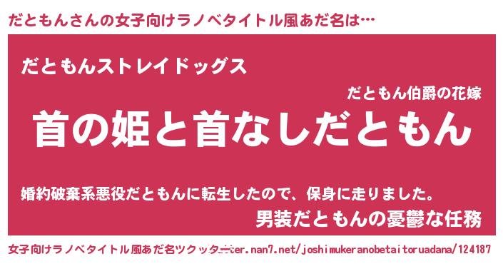 | 意味不明あだ名 | 『自称だともん』『だともんフォーエバー』 |