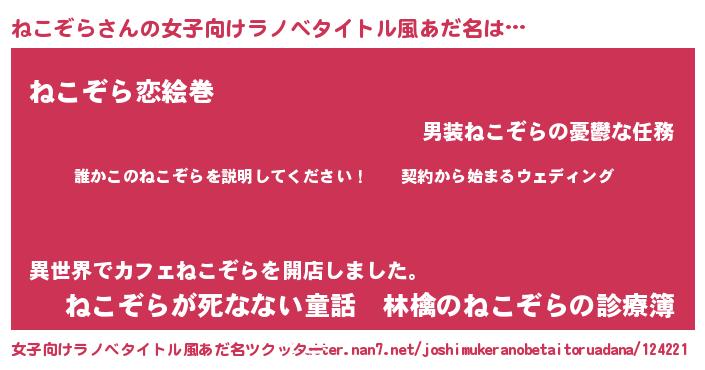 | 男性向けラノベタイトル風あだ名 | 『ネコゾラアートオンライン』 |