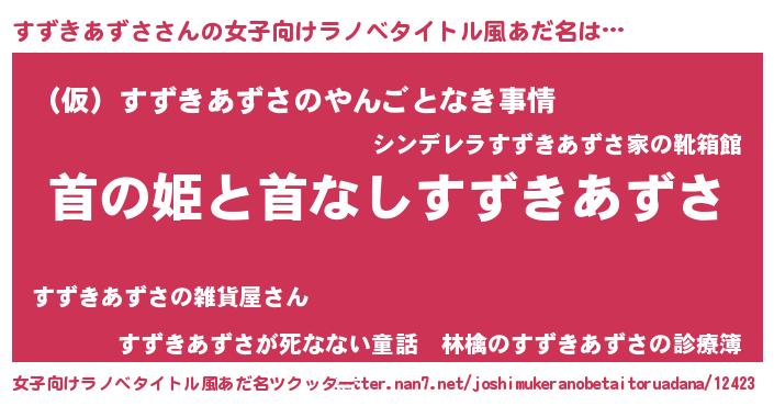 | 胡散臭い通販商品みたいなあだ名 | 『必ず成功するブレスレット…その名も「すずきあずさ」』 |