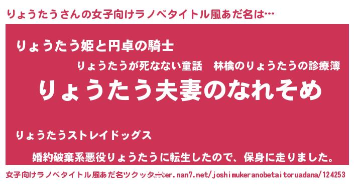 | ヒーロー風カッコイイあだ名 | 『友情の使者りょうたう』『仮面リョダー』 |