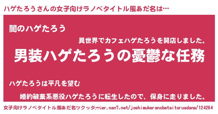 | 意味不明あだ名 | 『自称ハゲたろう』『永久保存ハゲたろう』 |
