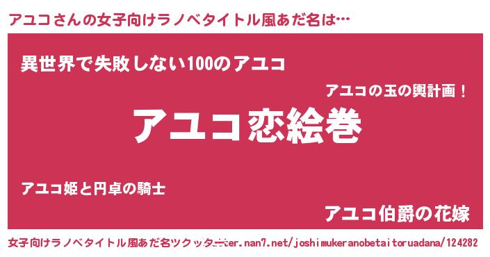 | 男性向けラノベタイトル風あだ名 | 『ノーゲーム・ノーアユコ』 |