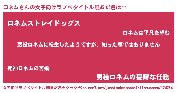 | 男性向けラノベタイトル風あだ名 | 『この素晴らしい世界にロネムを!』 |