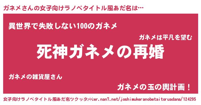 | 男性向けラノベタイトル風あだ名 | 『ノーゲーム・ノーガネメ』 |