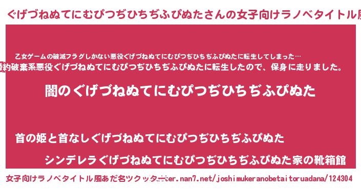 | 肩書あだ名 | 『ぐげづねぬてにむぴつぢひちぢふぴぬた総統』 |