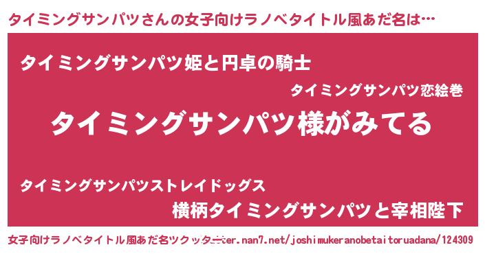 | 胡散臭い通販商品みたいなあだ名 | 『全米が絶賛したサプリメント…その名も「タイミングサンパツ」』 |