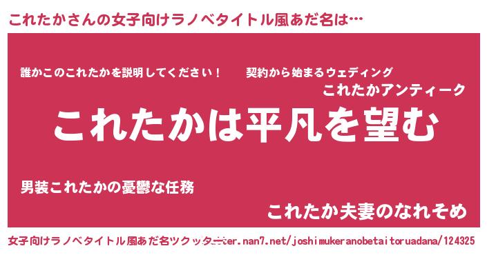 | 胡散臭い通販商品みたいなあだ名 | 『信頼と実績のネックレス…その名も「これたか」』 |